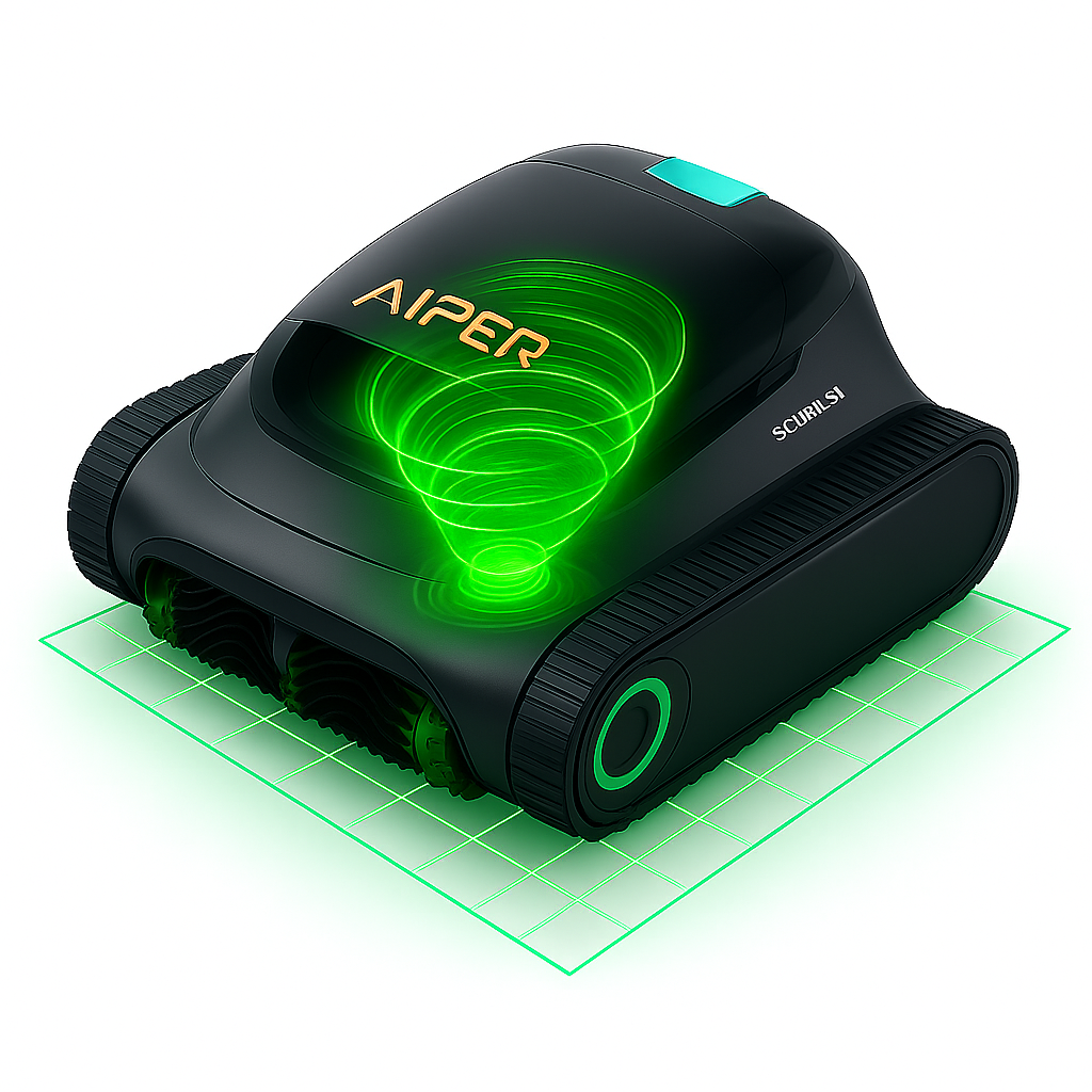 Aiper Scuba S1 představuje novou generaci inteligentních robotických čističů bazénů. Díky špičkovému výkonu, precizní navigaci a odolné konstrukci zvládne tento model údržbu jak nadzemních, tak zapuštěných bazénů s rozlohou až 160 m². Kombinuje mimořádně silný sací výkon s inovativní technologií WavePath™ 2.0, která zaručuje důkladné a systematické čištění celého bazénu – od dna až po vodní linku.