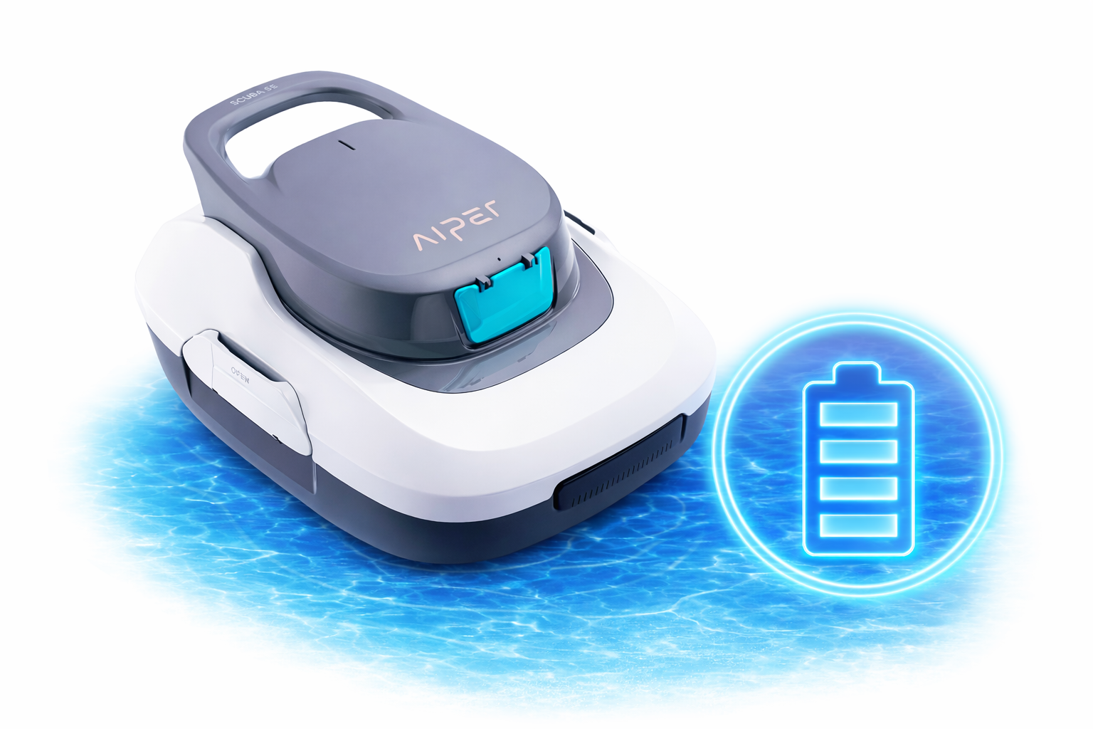 Aiper Scuba SE White je elegantní bezdrátový bazénový vysavač, který v sobě spojuje účinnost, jednoduchost a moderní design. Navržený pro majitele nadzemních i zapuštěných bazénů, zvládne vyčistit plochu až 80 m² a pracovat ve vodě o hloubce až 3 metry.