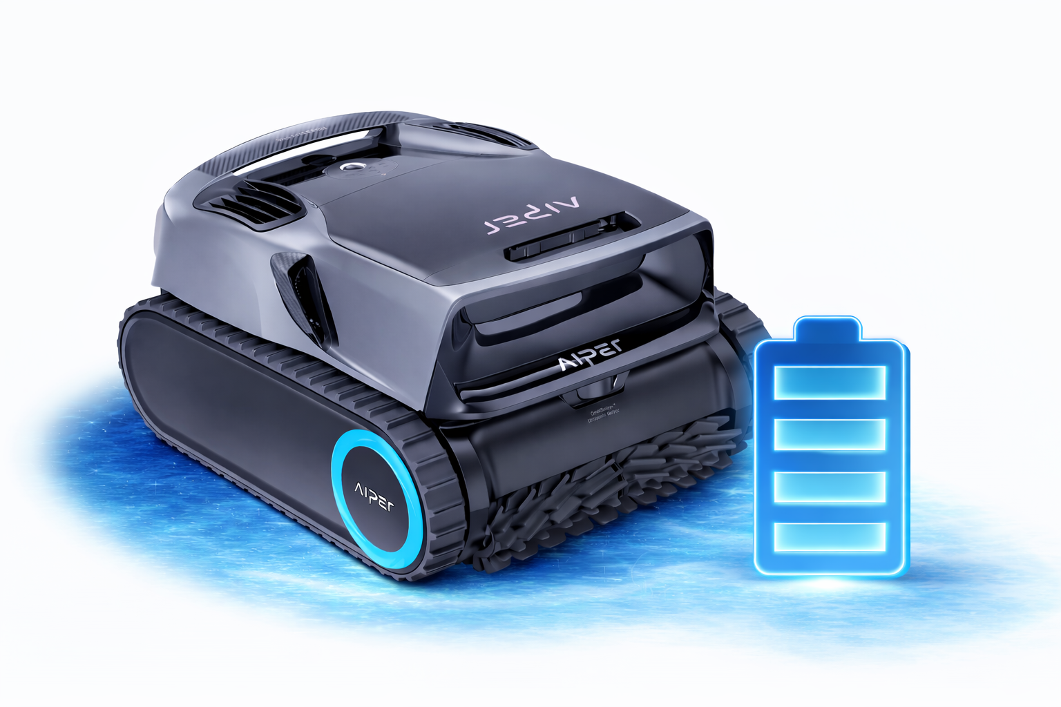 Revoluční baterie poskytuje 300 minut provozu při čištění dna, 500 minut při čištění hladiny a 180 minut při kompletním čištění bazénu. Bezdrátové nabíjení trvá pouhé 4 hodiny. Model disponuje chytrým systémem řízení spotřeby se dvěma režimy - Eco (80% výkonu) a Max (100% výkonu). Wireless Charging Dock umožňuje pohodlné nabíjení bez nutnosti manipulace s kabely.
