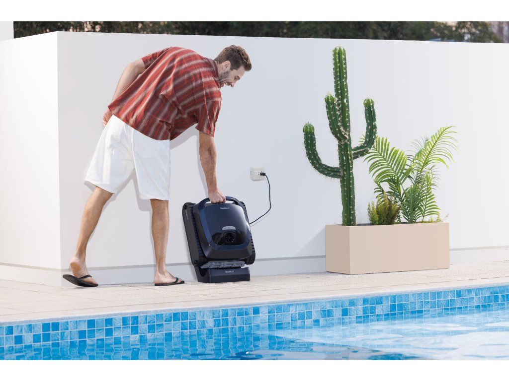Odpadá nepříjemné „lovení robota“ hákem z hloubky bazénu. Navíc díky systému SmartDrain™ začne robot při vytažení automaticky vypouštět vodu, takže je výrazně lehčí a manipulace je snadná i jednou rukou.