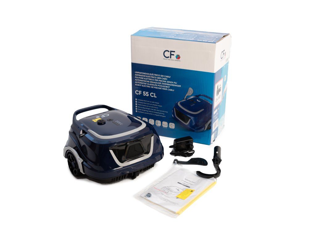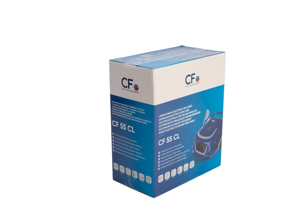 Bazénový vysavač CF 55 AKU je určený pro všechny typy bazénů do 80 m². Díky výkonné Li-Ion baterii s výdrží až 120 minut, velkým pogumovaným kolečkům FixTrack a dvojité filtraci spolehlivě odstraní i jemné nečistoty. Po dokončení práce se automaticky zaparkuje u stěny pro snadné vyjmutí. Váží pouhé 3,5 kg, nabízí velmi snadnou obsluhu a díky voděodolnosti IPX8 je ideální pro každodenní údržbu vašeho bazénu.