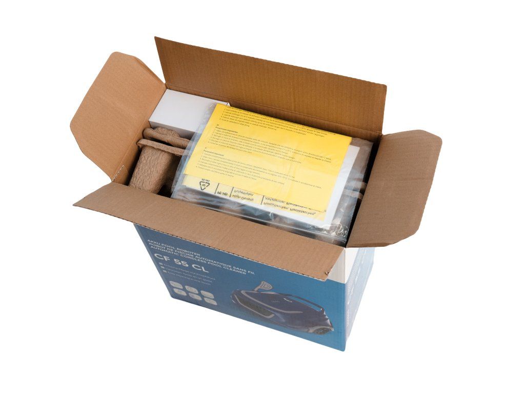Vysavač filtruje vodu rychlostí 8 m³/h, pohybuje se rychlostí 16 m/min a díky voděodolnosti IPX8 je bezpečný pro neustálé používání ve vodě. Praktický LED indikátor zároveň ukazuje stav baterie i průběh čistícího cyklu. Po dokončení práce vysavač automaticky zastaví u stěny díky funkci AutoPark, odkud jej snadno vytáhnete přiloženým hákem. CF 55 AKU je ideální volbou pro každého, kdo chce dokonale čisté dno bazénu bez hadic, kabelů a složitého nastavování. Jeho moderní technologie, nízká hmotnost a jednoduchá obsluha z něj dělají perfektního pomocníka pro každodenní údržbu.