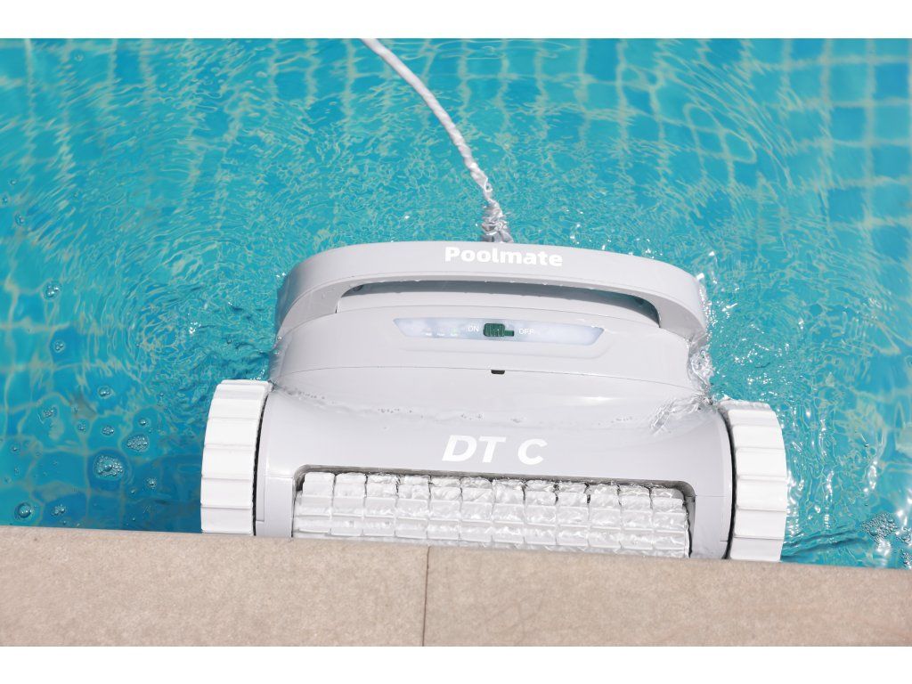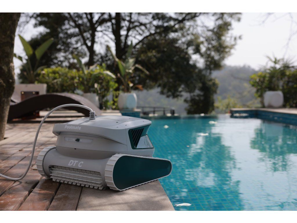 Poolmate DT C je výkonný automatický vysavač určený pro bazény do 100 m², který čistí dno, stěny i vodní linku. Díky dvojitému odstředivému čerpadlu s výkonem 420 l/min a patentovanému bočnímu pohybu nabízí precizní čištění i v místech, kam jiné roboty nedosáhnou. Dvanáctimetrový kabel, filtrační koš 4,1 l, tři režimy čištění a ovládání přes aplikaci z něj dělají spolehlivého pomocníka pro každodenní údržbu. Vysoká odolnost vůči soli, chlóru a teplotním výkyvům zajišťuje dlouhou životnost a stabilní výkon.