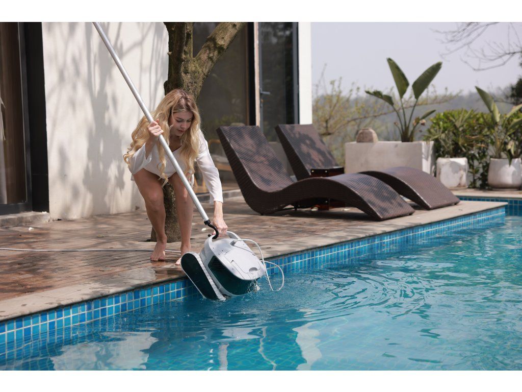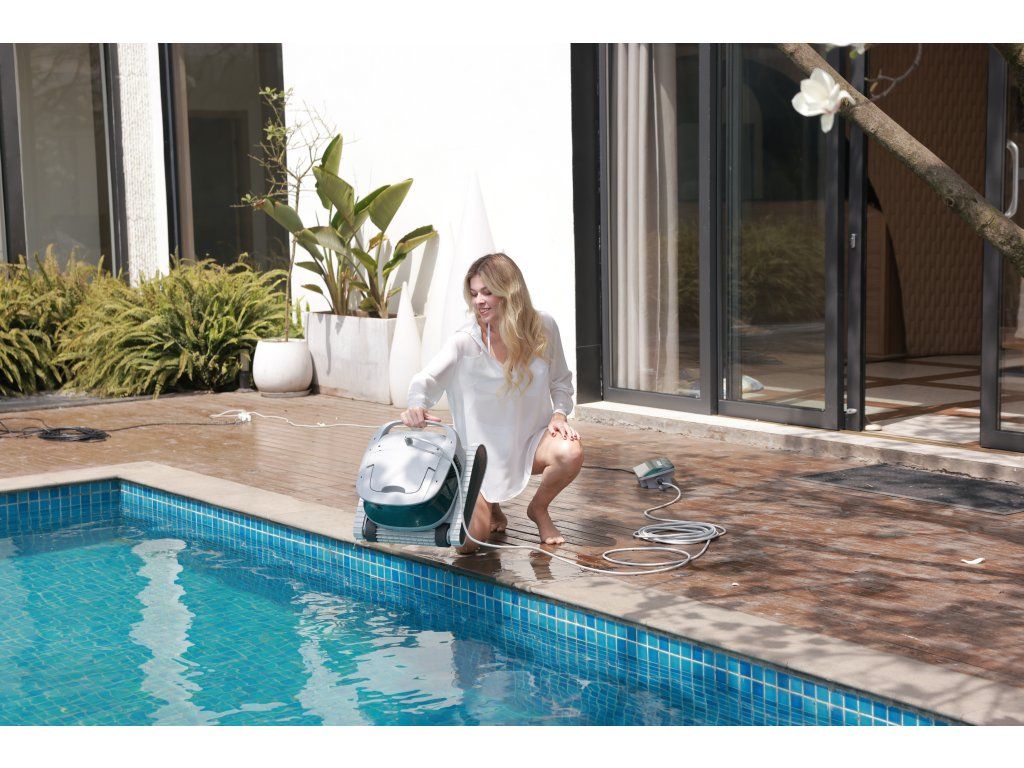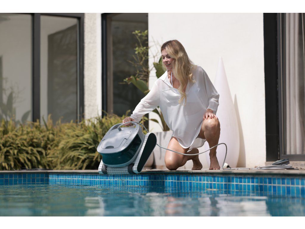 Údržba je velmi jednoduchá – vysavač lze otevřít shora i zespodu, filtrační koš snadno vyjmete, vysypete a opláchnete pod tekoucí vodou. Zesílené pásy s vyšším třením umožňují překonávání hlavních odtoků, světel a drobných nerovností dna.