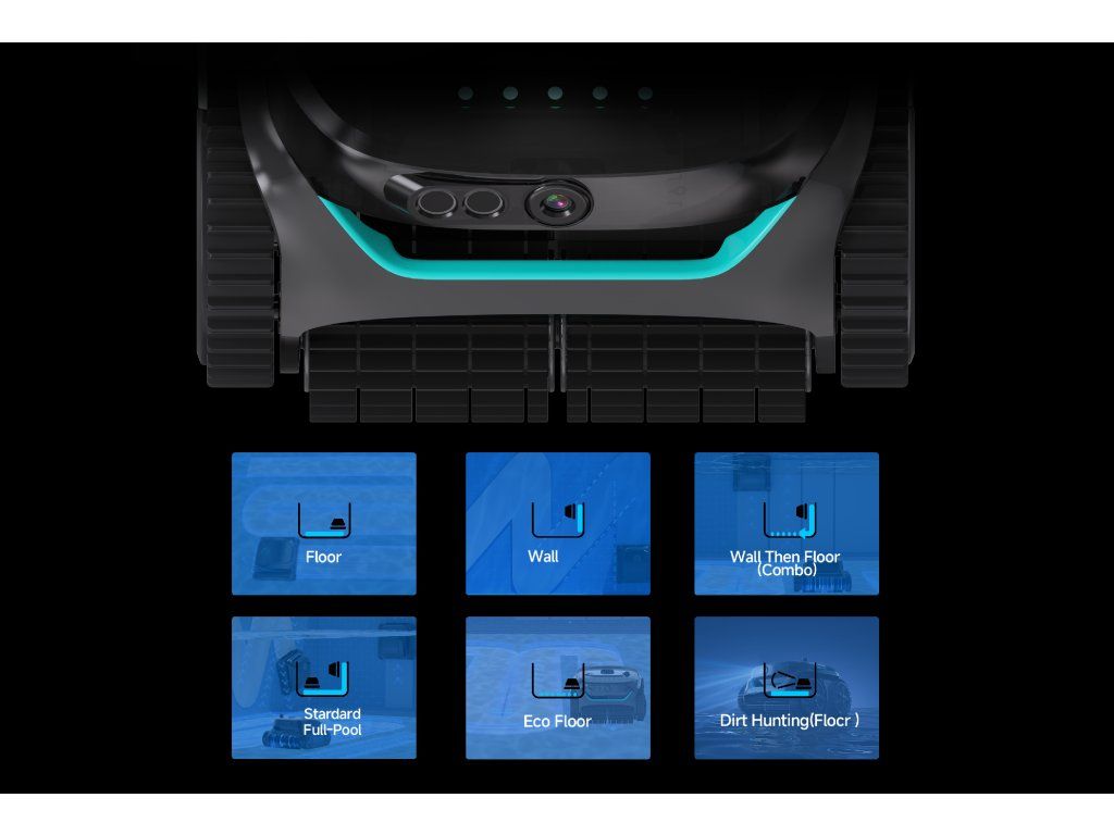 Vyberte si mezi režimy čištění dna, stěn nebo kompletního cyklu. Nechybí ani inteligentní režimy jako ECO nebo cílené čištění znečištěných míst.