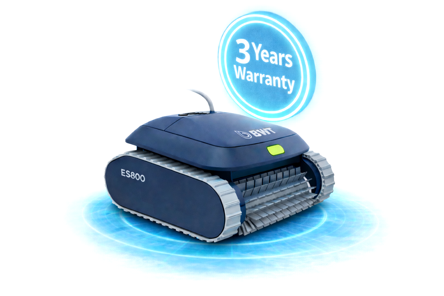 Pokud se rozhodnete pro bazénového robota BWT ES800, budete mít prospěch ze spolehlivého a účinného vybavení navrženého tak, aby zjednodušilo údržbu vašeho bazénu. Jeho technologie GENCORE7 zajišťuje čištění bez námahy s profesionálními výsledky. Díky ověřené kvalitě výrobku si dovolujeme poskytnout prodlouženou záruku 3 roky.