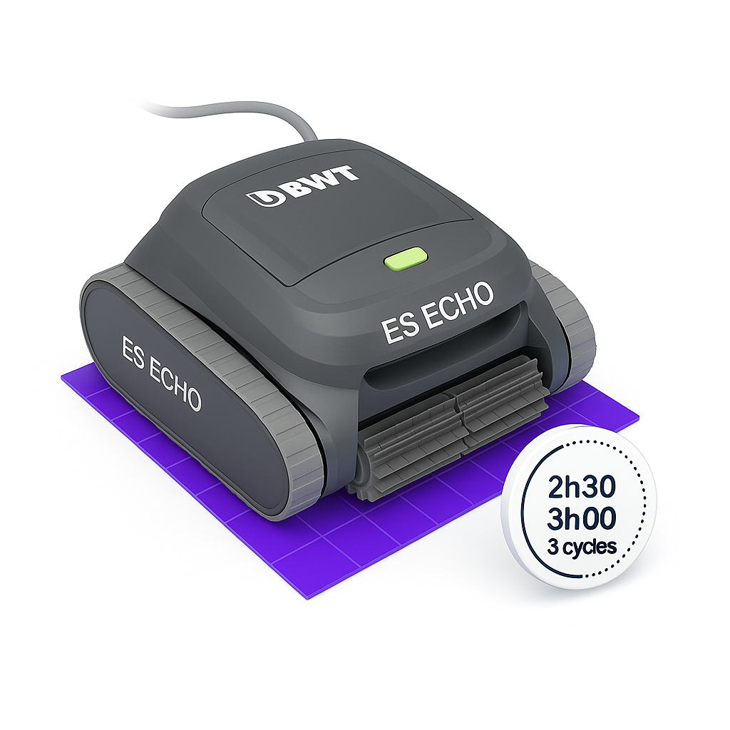 Užijte si dokonale čistý bazén s akumulátorovým robotem BWT ES Echo . Tento bazénový robot, navržený pro majitele, kteří hledají jednoduchost a efektivitu, běží na baterii a nabízí naprostou svobodu použití.