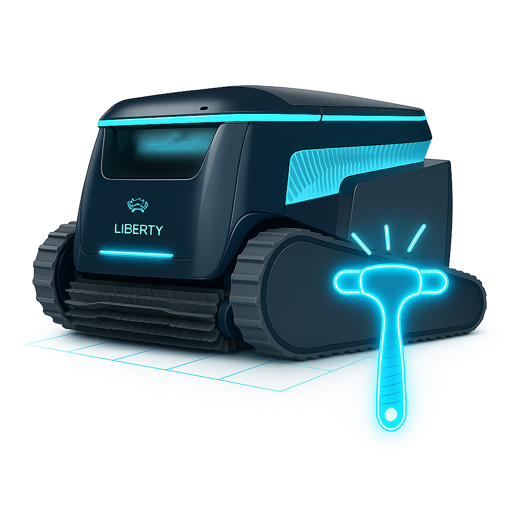 Aktivní kartáč efektivně odstraňuje usazeniny ze dna, stěn, schodů i problematické vodní linky. Robot se přizpůsobí tvaru bazénu – obdélníkovému, kruhovému, ledvinovému i nepravidelnému.