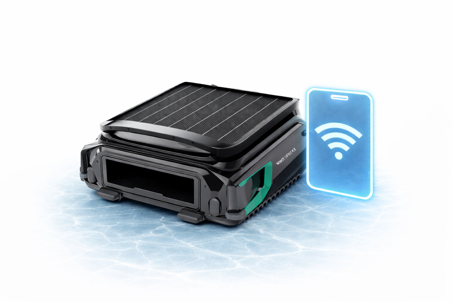 Díky připojení přes Bluetooth nebo WiFi máte kontrolu nad robotem přímo ze svého telefonu – bez nutnosti manipulace přímo v bazénu.