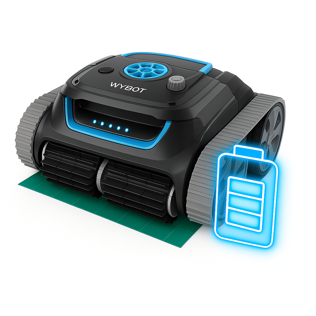 Díky silné 6 400 mAh baterii vydrží WYBOT S1 čistit až 3 hodiny v kuse, což pokryje i velké bazény do 120 m². Plné nabití trvá pouze 2,5 hodiny, takže je možné více cyklů během dne, pokud je potřeba intenzivnější údržba.