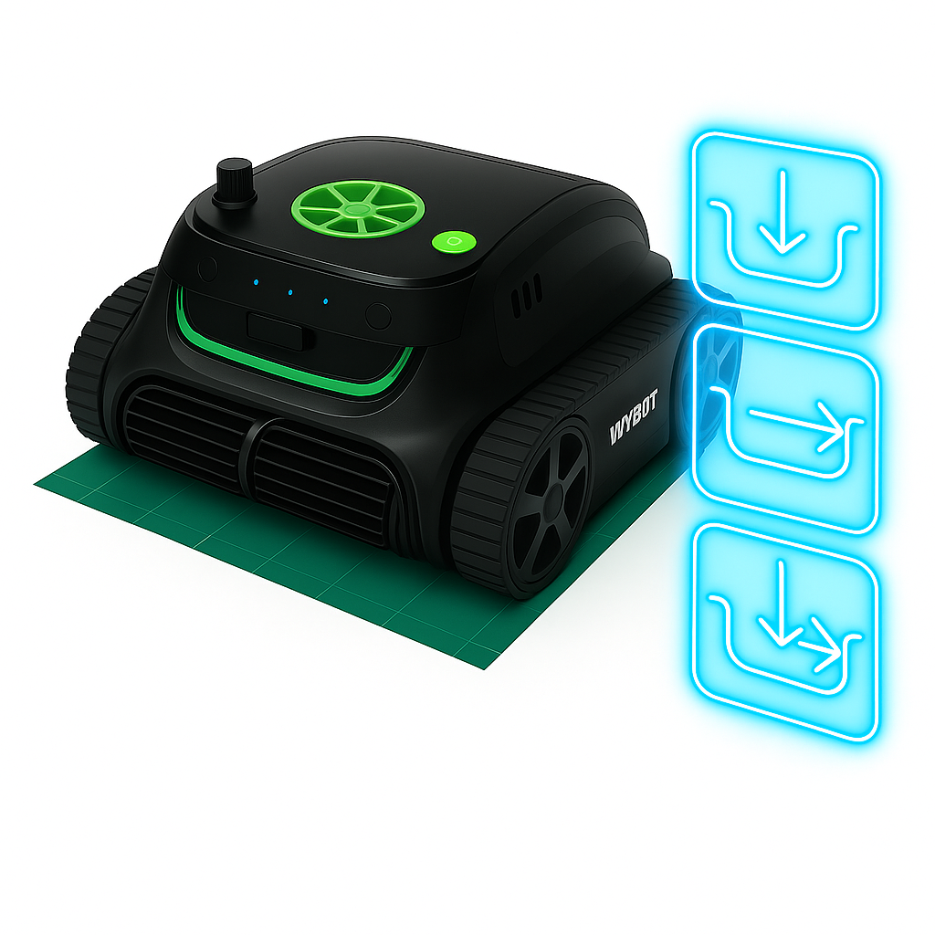 Inteligentní navigační systém s infračervenými senzory a 3 motory zajišťuje optimální pohyb po dně i stěnách bazénu, bez ohledu na typ povrchu. Robot se přizpůsobuje tvaru bazénu a efektivně čistí i těžko dostupné oblasti, jako jsou schody, kouty a vodní linka.