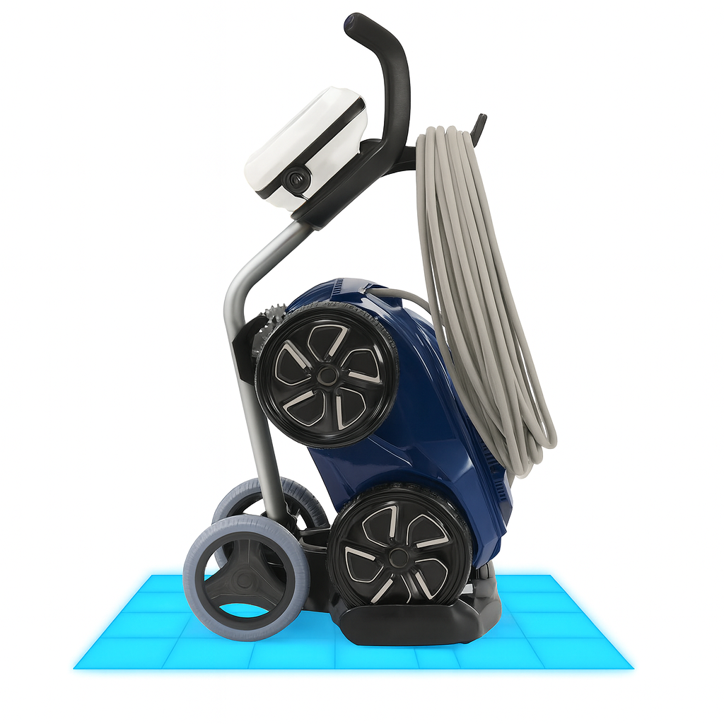 Robot je vybaven otočným kabelem Swivel, který brání jeho zamotání a usnadňuje manipulaci. Navíc je součástí balení transportní vozík, díky němuž můžete robota snadno převážet a ukládat po každém použití.