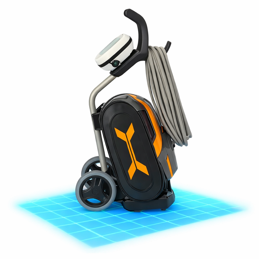 Díky přepravnímu vozíku, který je součástí ZDARMA ke koupi robota, kromě možnosti umístit napájecí zdroj nahoru, můžete robota bez námahy přepravovat a bezpečně a pohodlně uložit pokaždé, když dokončí čisticí cyklus.